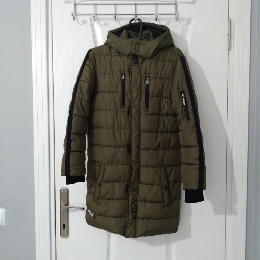 Defacto marka,haki yeşil,içi polar,kapşonlu kalın bir uzun parka.Bir sezon giyildi.Dar geldiği için satışta.Sadece ön alt sağda bir leke var.Kaban yıkandı ama o leke çıkmadı.Kaban koyu renk olduğundan pek anlaşılmıyor.Fotoğrafla belirtmeye çalıştım.2 kol arası 50 cm.Enseden boyu 80 cm.