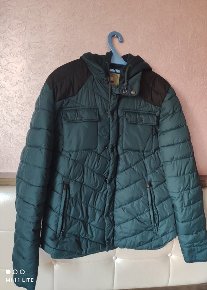 .köyü petrol yeşili rengi.sirt ve kapson kısmı pamuklu.kapson çıkarılabilir.orta kalınlıkta polyester.ince olanlarla karıştırmayın .çok sıcak tutar kışın .5-6 kez giydim belki .onun dışında dolapda duruyordu .slim fit.
