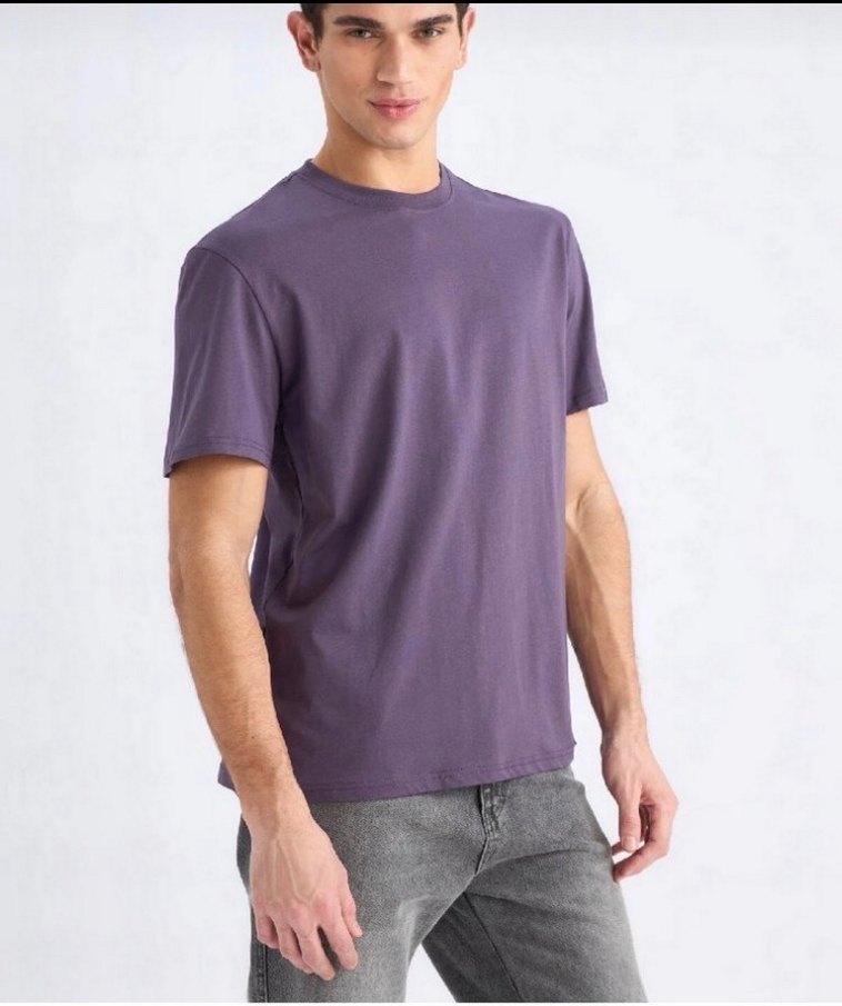 Defacto Erkek Mor Kısa Kollu Salaş Tişört