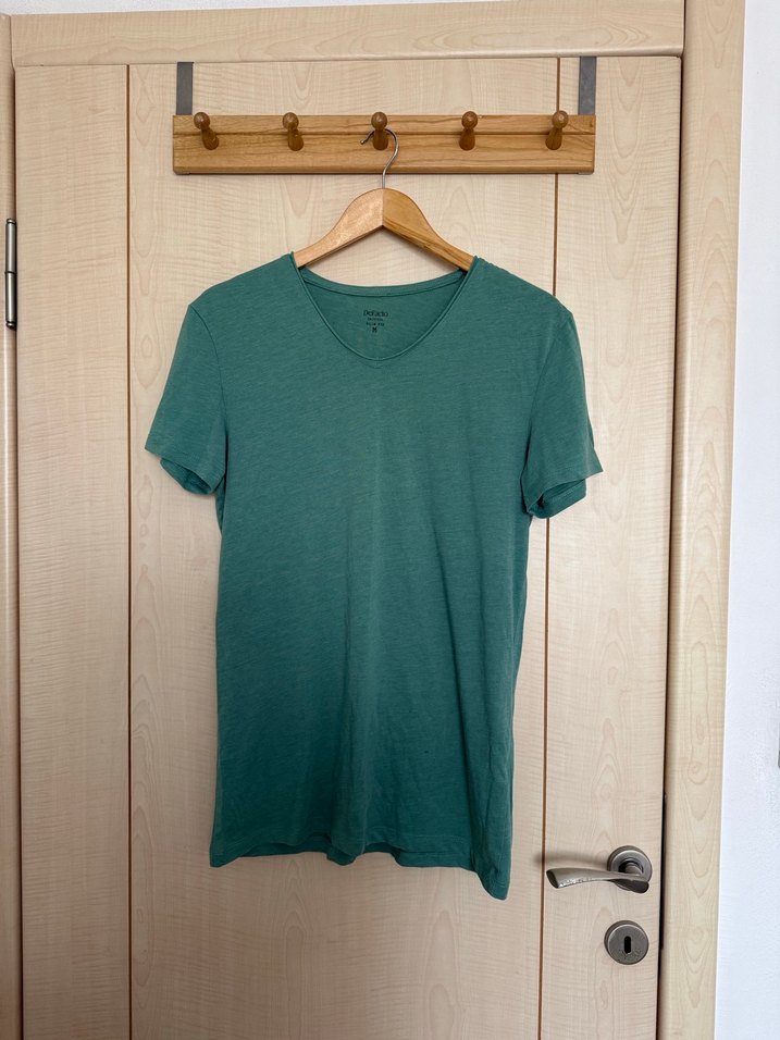 Yumuşak keten kumaştan, kısa kollu, yuvarlak yakalı, yeşil pastel renginde, bol kesim erkek tişörtü. Günlük rahat kullanım için sade ve desensiz. Üründe bir kusur bulunmamaktadır.