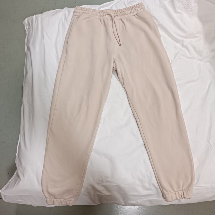 Yumuşak ve sıcak kumaştan, rahat kesim bej eşofman altı. Bel ve bilekleri lastikli. Fark edilmeyecek kadar ufak lekeleri var ama kumaşında yırtık vs bir sorun yok. Kışlıktır çok sıcak tutar.