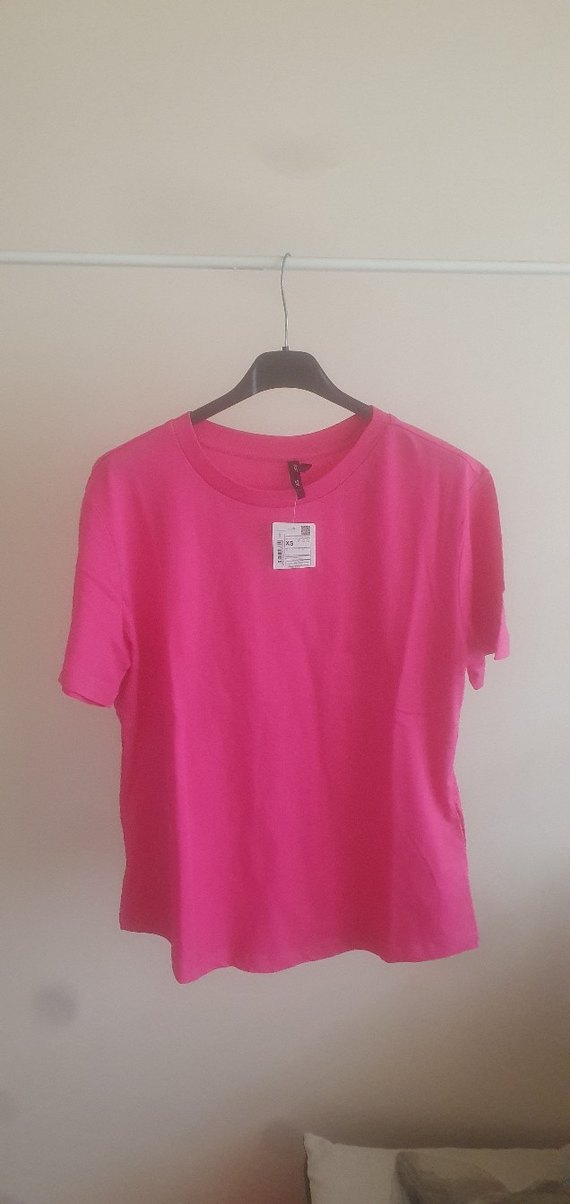 Defacto XS beden fuşya pembe renk kısa kollu bisiklet yaka basic thsirt. karton etiketi uzerindedir.