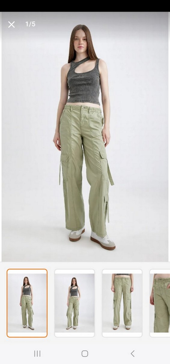 Bol kesim, kemerli ve midi boyda açık yeşil kumaş pantolon. Desensiz ve yumuşak sentetik kumaştan, günlük kullanıma uygun. (aldim yıkadım ama hiç giymedim tertemiz kusursuz)