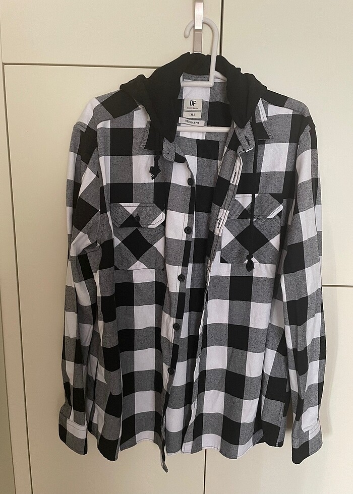 Ekoseli, şapkalı gömlek şapkası düğmeli istersen çıkartabilirsin. #ekosegömlek #defacto