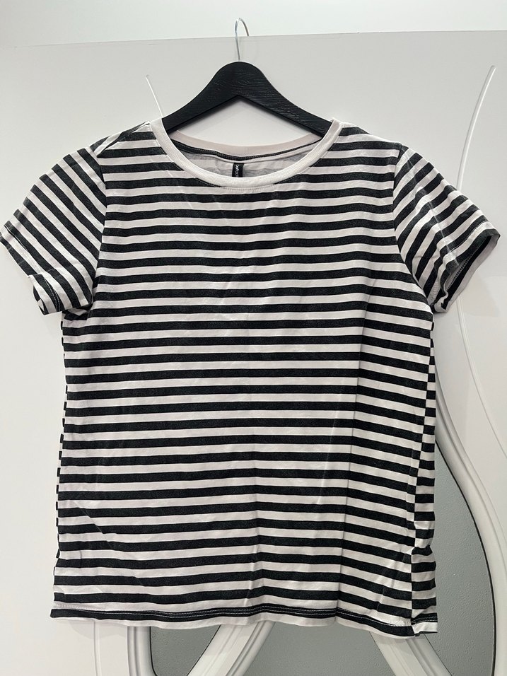Defacto XS beden Kısa kollu, yuvarlak yakalı, ince kesim kadın tişörtü. Gri beyaz çizgili deseni ve midi boyu ile günlük rahat şıklık sunar.