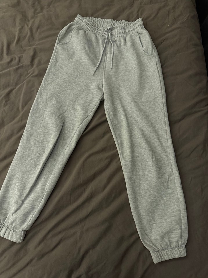 Gri renkte, bol kesim kadın eşofman altı. Yumuşak ve sıcak kumaş, lastikli bel ve bilek detaylarıyla rahat kullanım sağlar. ♀️Az giyildi kalıbı kücük S beden de kullanabilir