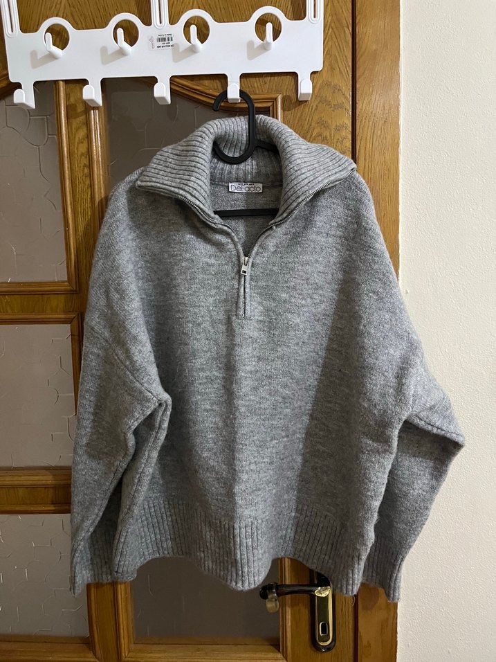 Defacto Gri Fermuarlı Kazak