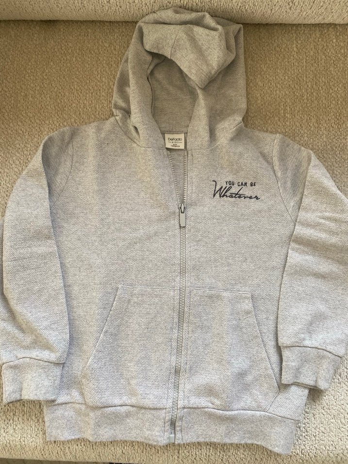 Gri renkli, kapüşonlu ve fermuarlı erkek çocuk sweatshirtü, uzun kollu ve bol kesimdir. Sokak tarzına uygun, yumuşak ve sıcak kumaştan üretilmiştir.