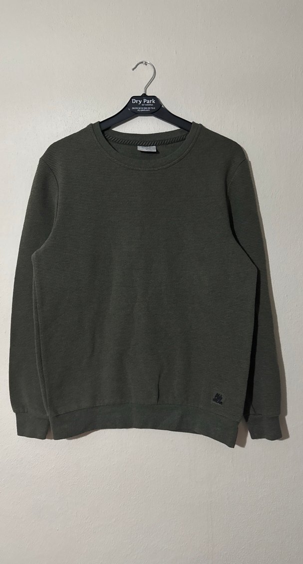 Haki renkli, yuvarlak yaka ve uzun kollu erkek sweatshirt. Rahat kesimi ile günlük kullanım için uygundur. Kusursuz Defosuzdur S Bedendir Bol Kalıptır