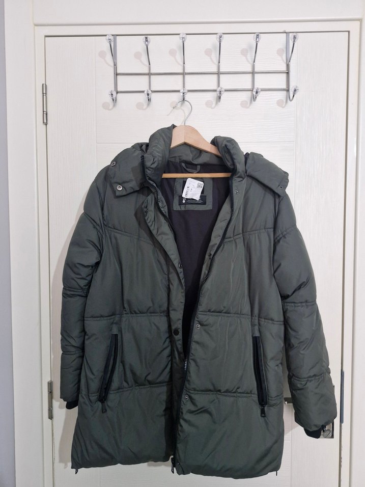 Defacto ürünüdür. Yeşil renkli, düğmeli ve kesimi vücuda oturan bu kadın kışlık midi mont, uzun kollu ve yakası kesik detaylıdır. Sıcak tutan fleece kumaştan üretilmiştir.Ceplerinin içi polardır. Etiketlidir S bedendir.