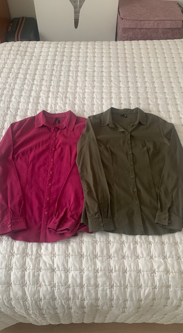 Hiçbir sorunları yok temiz yeni gibi Defacto kadın gömlek belden oturtmalı fujya ve haki renkleri iki koltuk arası 45 cm uzunluğu 65 cm