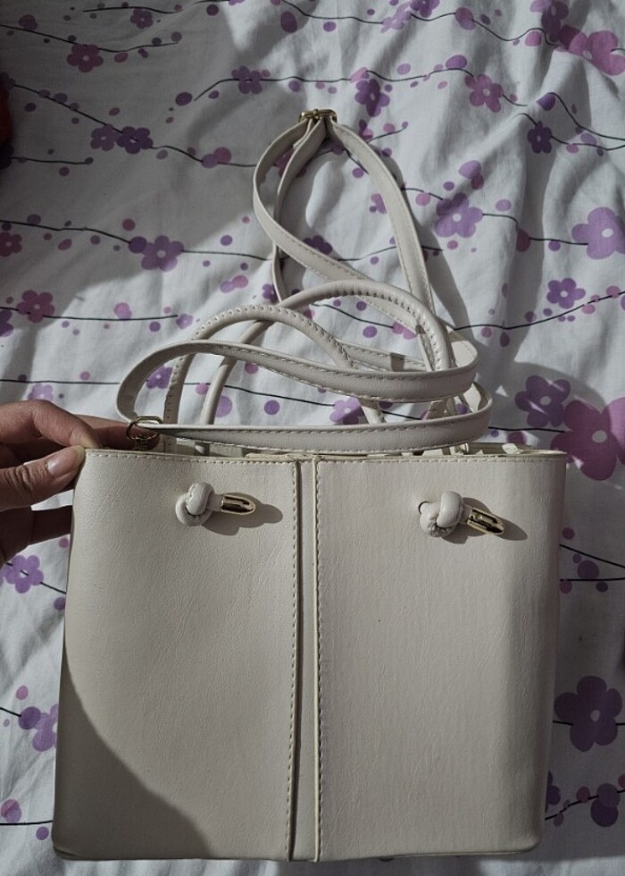 Defacto Kadın El çantası. Suni deri, krem ten rengi. Hiiiç kullanmadım siyahını kullanıyorum. Zara muadili çok kullanışlı. Dolabımda muhafaza ediyordum, diğer çantamdan renk bulaşmış malesef, fiyati uygun tutuyorum. Tek taraflı kullanılırsa sorun olmaz. Fotoğrafı ekledim.Başka hiçbir problemi yok derisi falan sağlam. Markayı temsili işaretledim, teklif gönderebilirsiniz