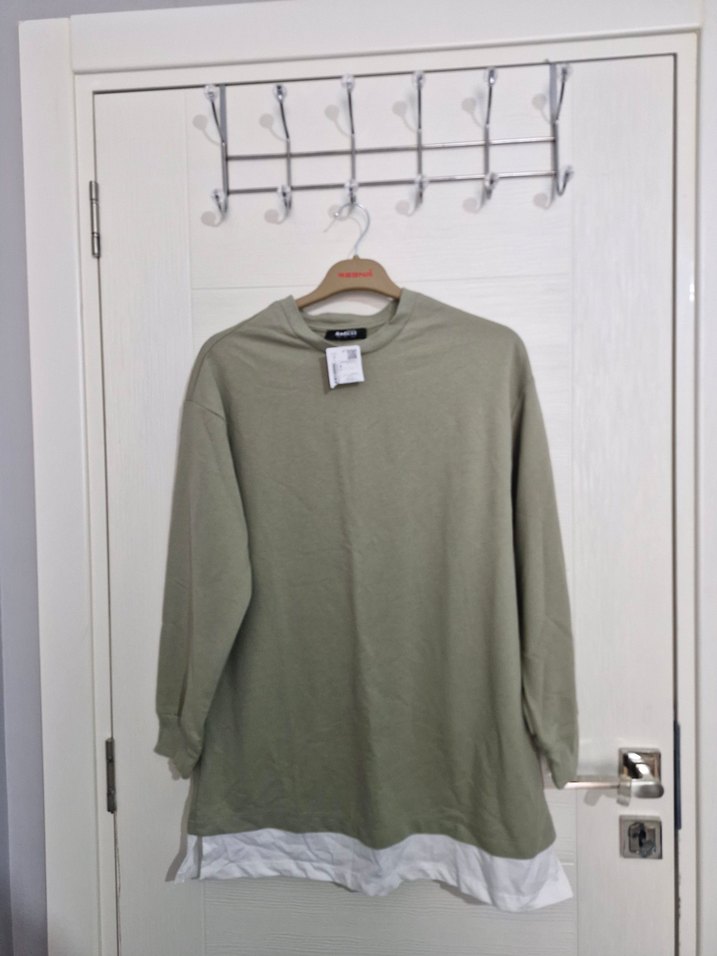 Kadınlar için haki renk, normal kesim, yuvarlak yaka ve uzun kollu sweatshirt. Yumuşak pamuk kumaştan, alt kısmında katmanlı detay bulunur. Günlük kullanım için uygundur. S bedendir. Defacto ürünüdür. Tesesttüre uygundur. Etiketlidir.