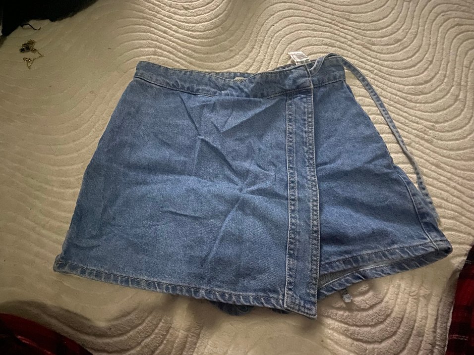 Kadınlar için mavi kot midi şort, bol kesim ve kemerli bel ile rahat sokak stili için uygundur. Desensiz, günlük kullanıma uygun.