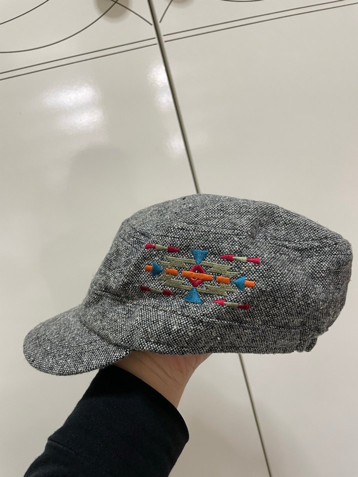 DEFACTO kadın şapka renkli nakışlara sahip gri kadın şapkası, bohem ve sokak stilini bir araya getirir.