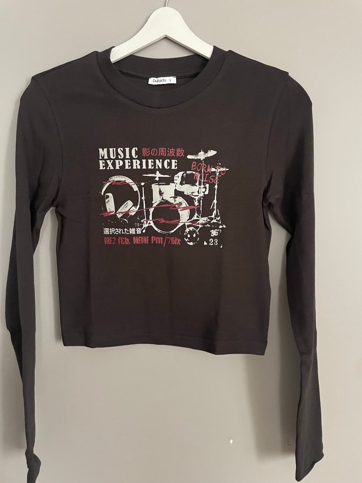 Siyah, baskılı, uzun kollu ve fitted kesim kız çocuk tişörtü. Rock punk tarzında, crew neck yaka ve sentetik kumaştan üretilmiştir.