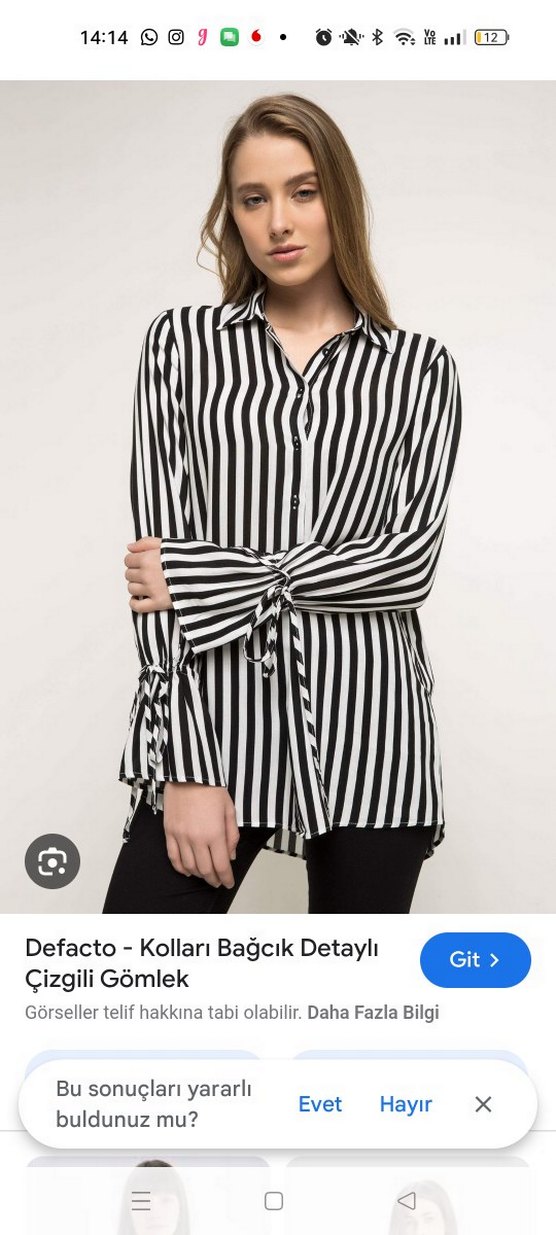 Defacto'nun bu kadın gömleği uzun kollu, bağcıklı detaylara ve salaş kesime sahiptir. Siyah beyaz çizgili, düğmeli ve günlük kullanıma uygundur.