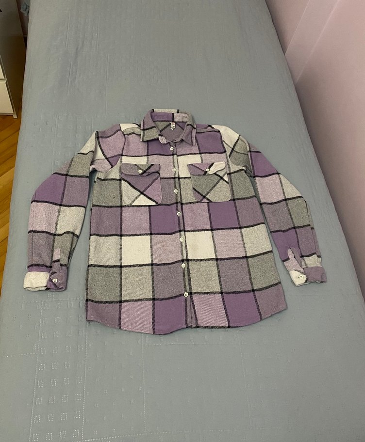 Defacto kareli oduncu gömlek 13-14 yaş gri ve mor renkli