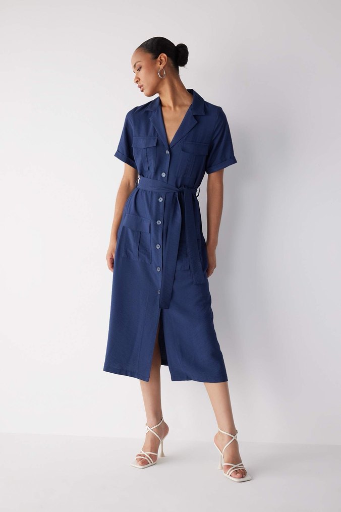 Defacto Kemerli Twill Midi Elbise