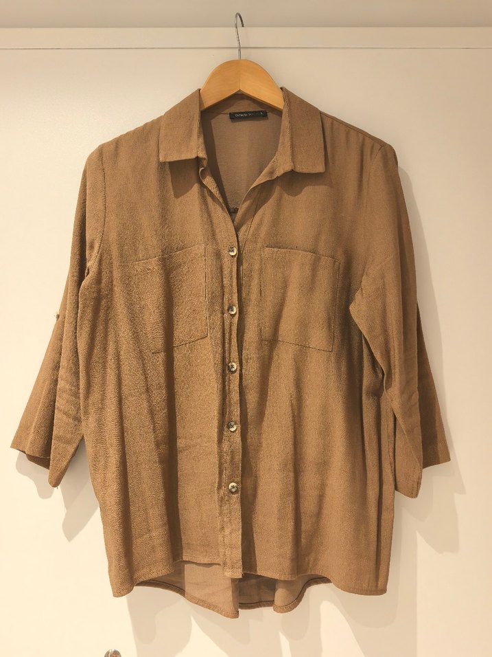 Birkaç sefer giydim. Keten görünümlü çok rahat bir kumaş. Fakir koldur, katlanarak daha da kısaltılabilir. Yeniden farksızdır.