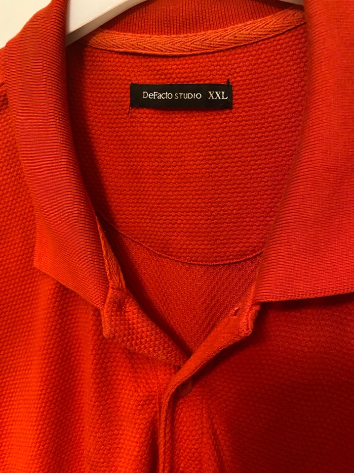DeFacto markalı, düğmeli yakalı, kısa kollu, kalıplı kırmızı erkek polo tişört. Sentetik kumaştan, baskılı ve midi boyda, günlük ve sokak stiline uygun. Sıfır ayarında temiz oversize ölçüleri iki kol arası 68 boy omuzdan 80 cm temiz ürün