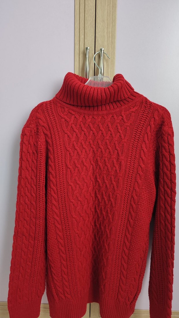 Etiketinde de görüldüğü gibi Defacto marka kırmızı örgü boğazlı kadın kazak. L bedendir. Sadece bir kez giyilmiştir. Çok iyi durumdadır.