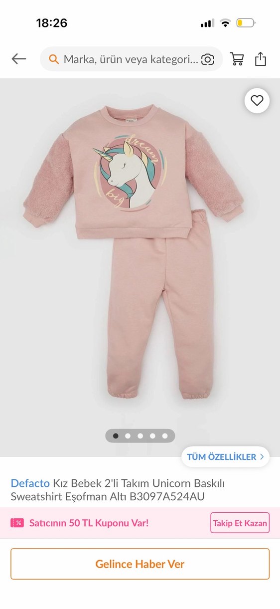 Defacto kız bebek için unicorn baskılı, uzun kollu, peluş detaylı sweatshirt ve eşofman altından oluşan pastel pembe 2'li takım. İçi yünlü terletmeyecek ve sıcak tutan bir kumaş 12-18 ay kullanışlı defosu yok