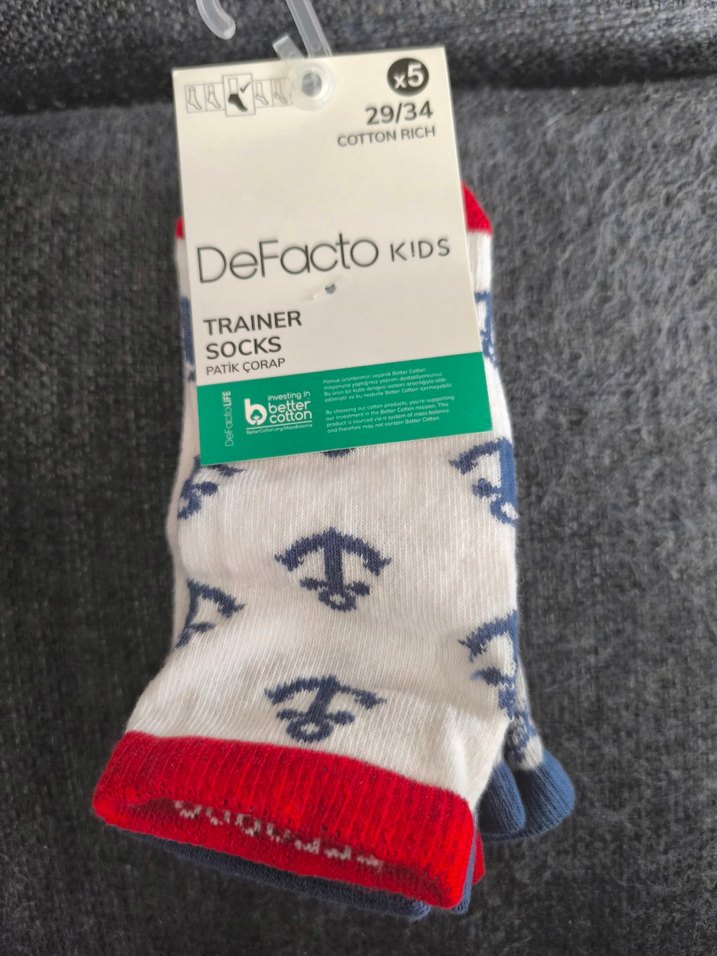 DeFacto kız çocuk çorapları pamuklu ve baskılıdır. Çok renkli ve gri tonlarında, 29/34 numaradır. 5 çiftlik pakettir.