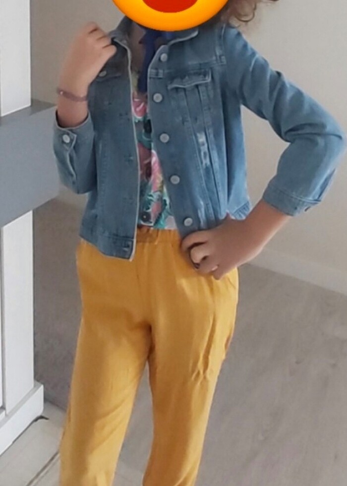 Defacto marka kız çocuk pantolon yazlık bol tiril tiril temiz kullanıldı. 11 yaş hardal rengi ütülemedim. Az giyildi. Mavi turkuaz üst ile kombin yapabilirsiniz. Paçası lastikli. Boyu 85 cm. Beli 30 cm. Cepli. Akşam yazarsanız sabah ptt kargo ile hemen gönderirim.