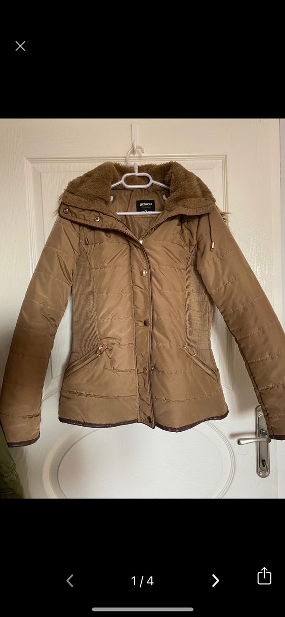 Defacto Kürk Detaylı Koyu Bej Kadın Kışlık Mont