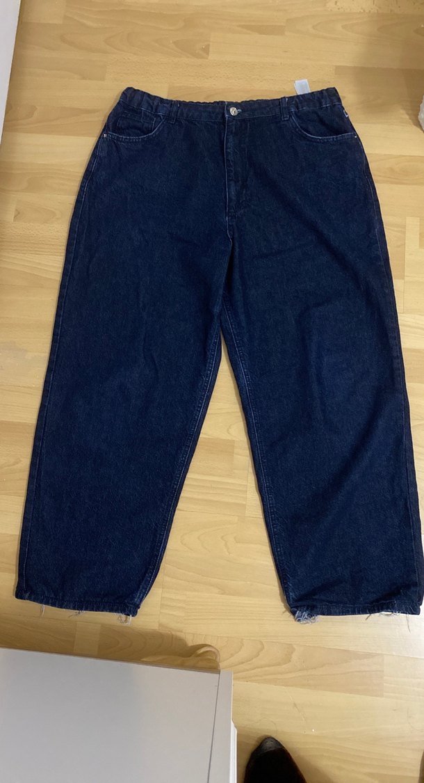Lacivert renkte, bol kesim ve midi boy kadın denim pantolon. Günlük kullanıma uygun, rahat ve şık sokak stili görünümü sunar. Oversızedır.
