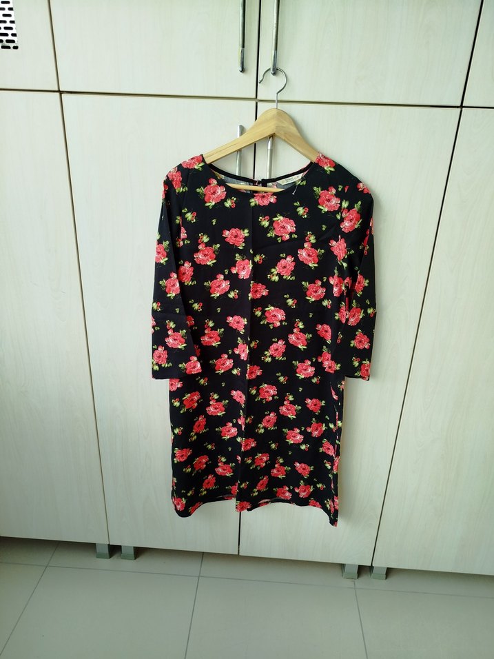 Uzun kollu, yuvarlak yakalı, bol kesim, renkli çiçek günlük elbise dokuma kumaş likralı değildir. Sıfır kullanılmamıştır. Etiketi üzerindeydi düşmüş. defosu yoktur