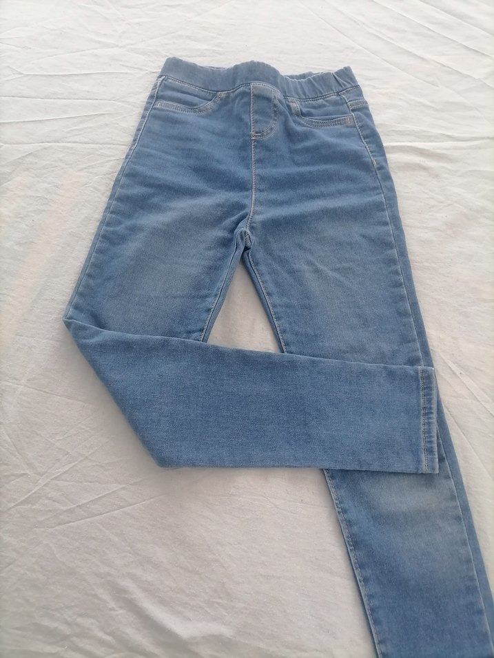 Kız çocukları için elastik bel bantlı, normal kesim pastel mavi denim pantolon. Trendy ve rahat normcore tarzda, günlük kullanıma uygun.