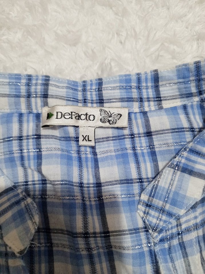 DeFacto marka, düğmeli, pamuklu, mavi hamile gömleği. Rahat kesimi ve günlük kullanıma uygun tarzıyla XL beden.