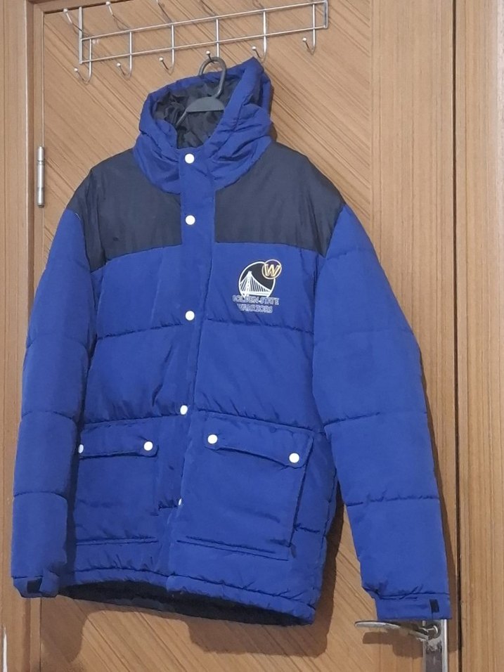 Koyu mavi renkte, düğmeli önü ve kesimli yaka tipi olan erkek çocuk montu. Rahat kalıp ve baskılı desene sahip, yumuşak kumaşla sıcak tutar.