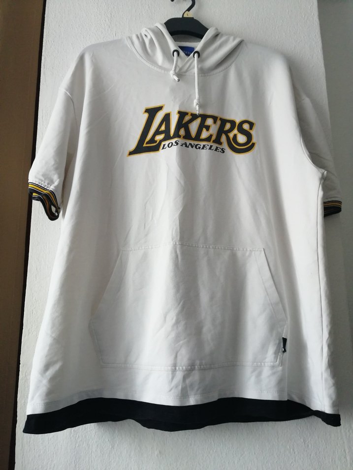 Defacto, NBA marka, Xl beden Beyaz Lakers baskılı, kapüşonlu ve kısa kollu oversize tişört. Yumuşak, sıcak kumaştan yapılmıştır, sportif görünüme uygundur. Kanguru cepli. Ölçüleri iki kol arası 65x2 cm boyu 74cm.