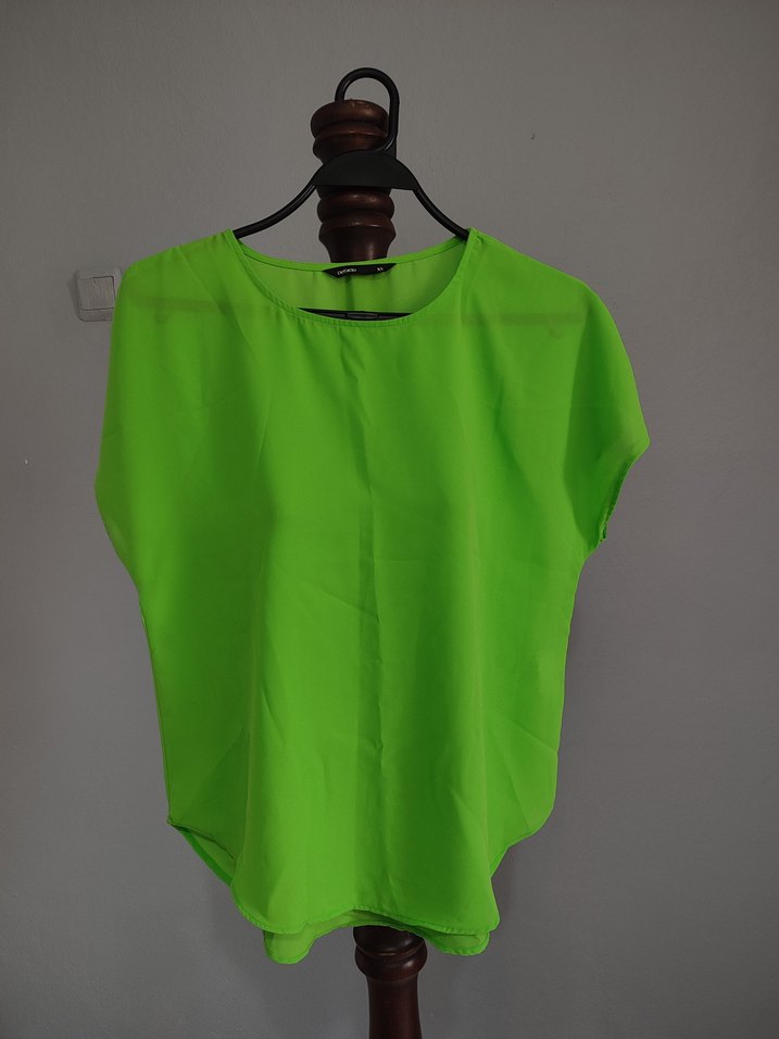 DeFacto markasına ait bluz rengi neon yeşildir. Az kullanılmıştır. Xs bedene aittir fakat S bedenler de tercih edebilir. Kesim olarak bol kesimdir