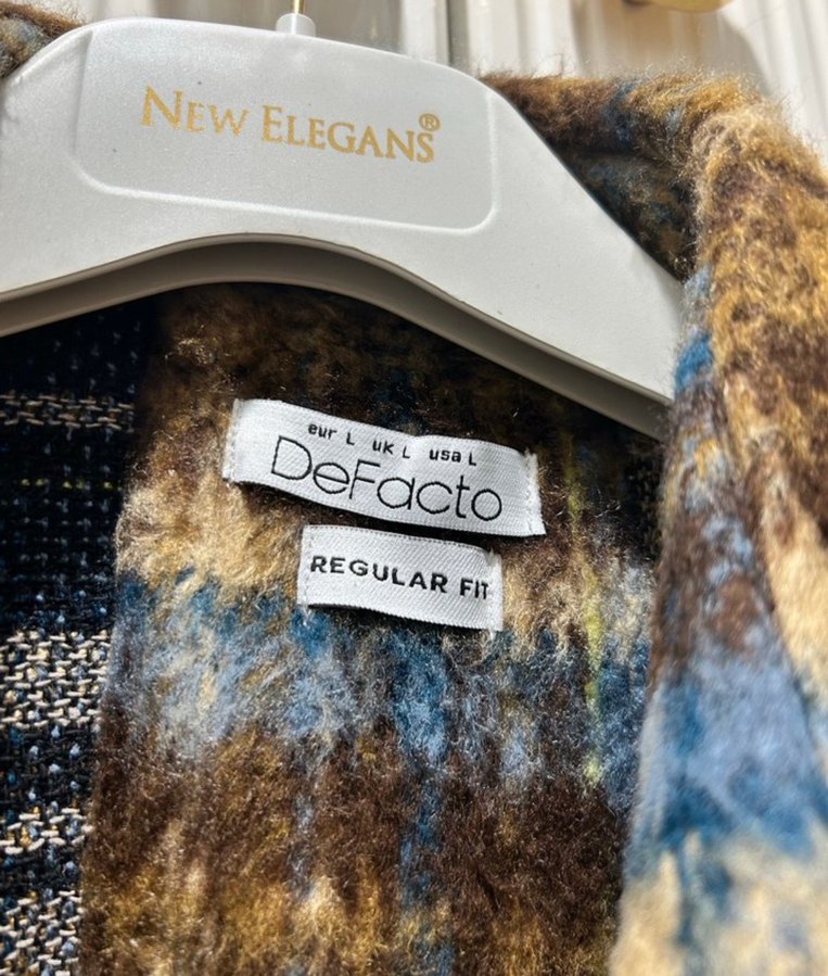 DeFacto New Elegans Regular Fit etiketli, gri, beyaz ve mavi tonlarda yumuşak kumaştan yapılmış L beden kıyafet.