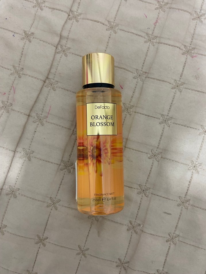 DeFacto Orange Blossom kadın parfümü, taze ve çiçeksi portakal çiçeği notalarına sahiptir. Şeffaf şişe ve altın kapak tasarımı ile dikkat çeker. Hiç kullanılmamış orijinal üründür.