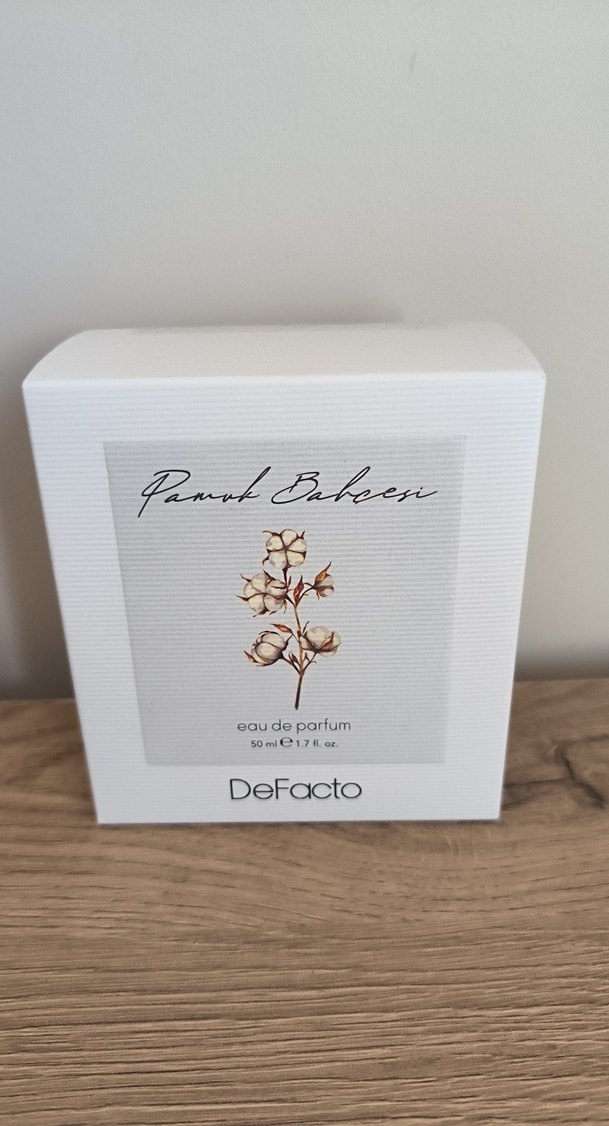 Yeni ve paketi açılmadı. Çok soft, çiçeksi hafif bir parfüm. DeFacto Pamuk Bahçesi kadın parfümü, 50 ml şişede sunulur. Pamuk tarlalarından ilham alan hafif ve yumuşak bir kokuya sahiptir. Eau de parfum.