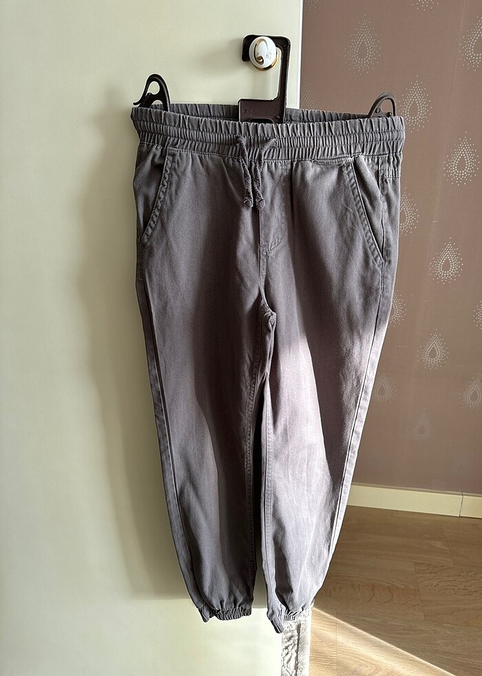 Erkek çocuk paçası lastikli 0 pamuklu pantolon. Antrasit rengindedir