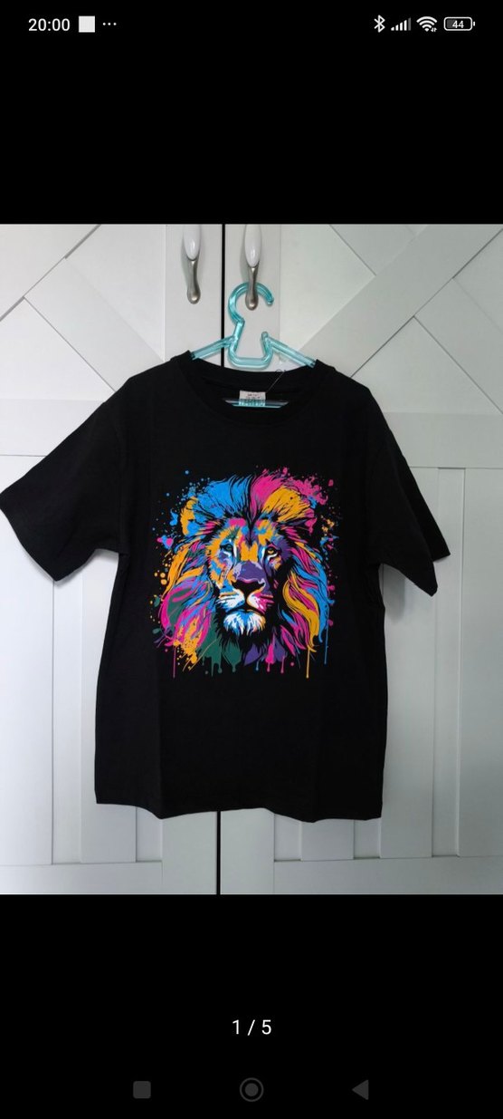 DeFacto yeni etiketli 7-8 yaş erkek çocuk t-shirt. #defacto #çocuktshirt #defactotshirt Siyah zemin üzerinde renkli aslan baskısı bulunan, yuvarlak yakalı ve kısa kollu erkek tişörtü. Sentetik kumaştan, bol kesim ve rock punk havası taşıyor.