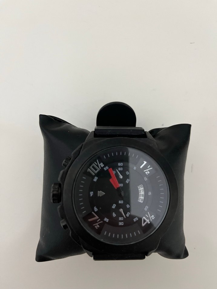 Bu erkek saati siyah minimalist tasarıma ve koyu biker tarzına sahiptir. Beyaz ve kırmızı belirgin işaretler ile fonksiyonel ve sade bir görünüme sahiptir. ⌚