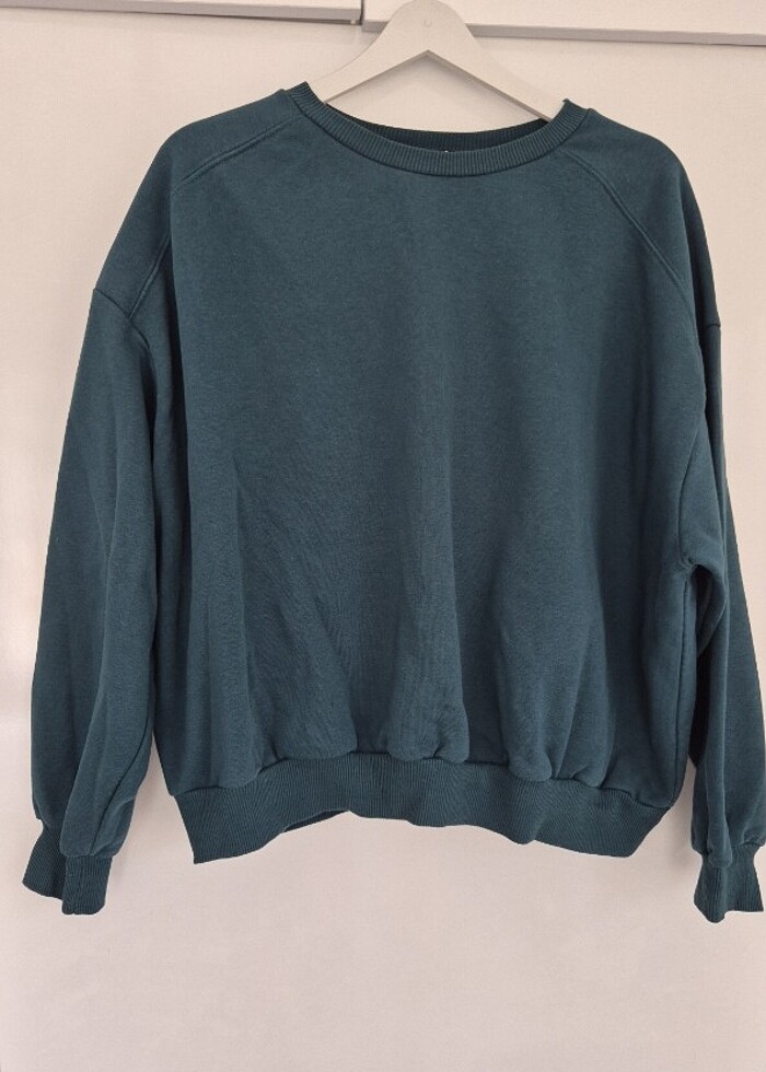 Zümrüt yeşili, en fazla 2 kere giyildi.. Oversize bir üründür.. Koltuk altı arası 72 cm Boy 58 cm