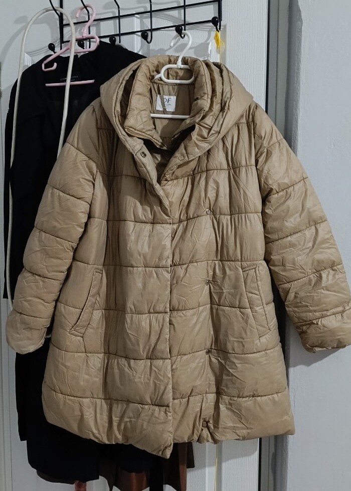 Hurçtan çıkardığım için biraz buruşuk duruyor bir sorunu yok hafif ama çok sıcak tutan bir mont omuzdan aşağı boy 80cm