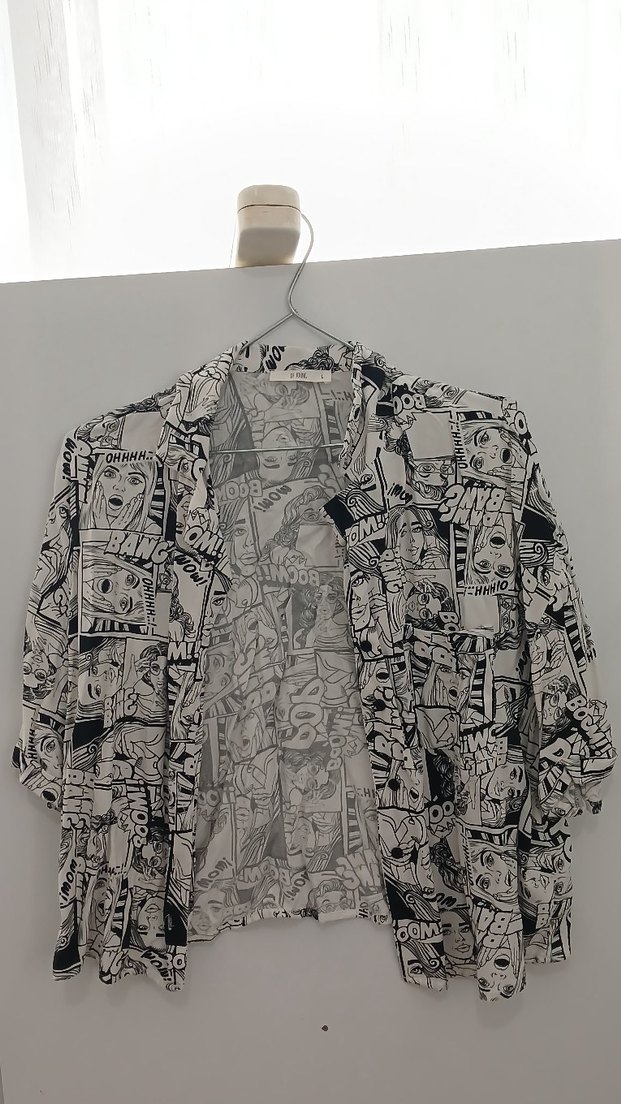 Defacto siyah beyaz Baskılı Oversize Kadın Gömlek L beden