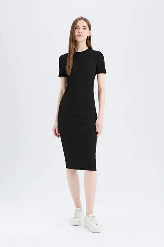 Defacto Siyah Kısa Kollu Kadın elbise