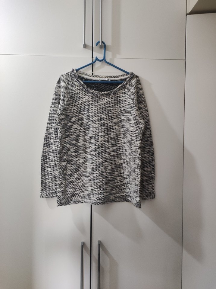 DeFacto siyah ve beyaz desenli kadın kazak, uzun kollu ve bisiklet yaka detaylıdır, kumaşı kaliteli ve kalındır. Minimalist tasarımı ve rahat kesimiyle günlük kullanıma uygundur. Aynen fotoğraflardaki gibidir, boynundaki zincirin son halkası yerinden çıkmış pek belli olmuyor ama yine de fotoğrafa ekledim, başka bir sorunu yoktur. M bedene de rahatlıkla olur. Alana şimdiden hayırlı olsun. #defacto #kazak #siyahbeyazkazak #kadınkazak #defactokazak #siyahbeyaz