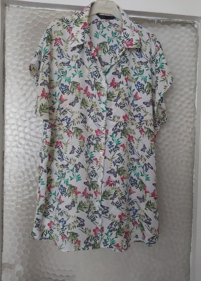 sadece bir kaç kez giyildi yeni gibi kalıbı geniş L bedenede olur iki kol arası genişlik 52 cm ön boy 67 cm arka boy 73 cm
