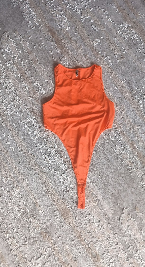Canlı turuncu renkte, kolsuz ve vücuda oturan kadın monokini. Cesur ve zahmetsiz şıklık sunar, midi boyuyla günlük kullanıma uygundur.